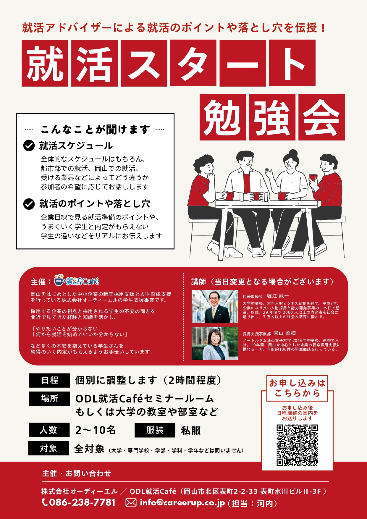 岡山で新卒採用支援・人財育成支援を行う株式会社オーディーエルが運営する学生支援事業です。